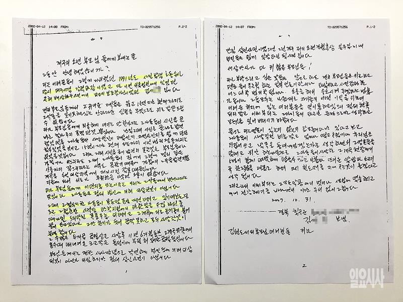 <일요시사>는 당시 김씨가 개구리소년 유가족에게 쓴 것으로 추정되는 편지를 단독 입수했다. 2007년 10월31일자로 ‘김현도(김영규군의 아버지)씨 외 부모님 여러분들’에게 보낸 A4용지 2장 분량의 편지다. 2007년 10월25일 서울고등법원에서 항소심 판결이 나고 일주일 뒤에 보낸 것으로 보인다.